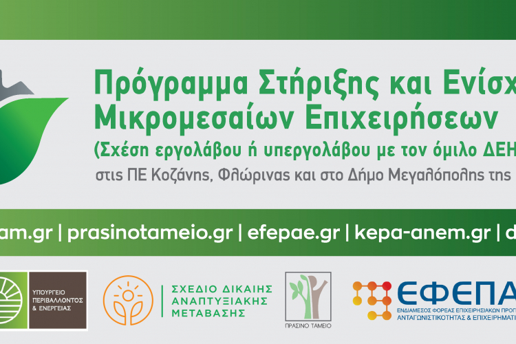 Ένταξη των πρώτων επενδυτικών σχεδίων στη Δράση «Πρόγραμμα Στήριξης και Ενίσχυσης Μικρομεσαίων Επιχειρήσεων στις ΠΕ Κοζάνης, Φλώρινας και στο Δήμο Μεγαλόπολης (ΠΕ Αρκαδίας» του Πράσινου Ταμείου